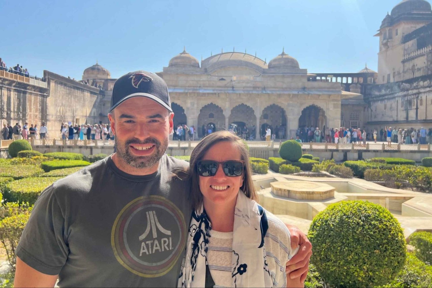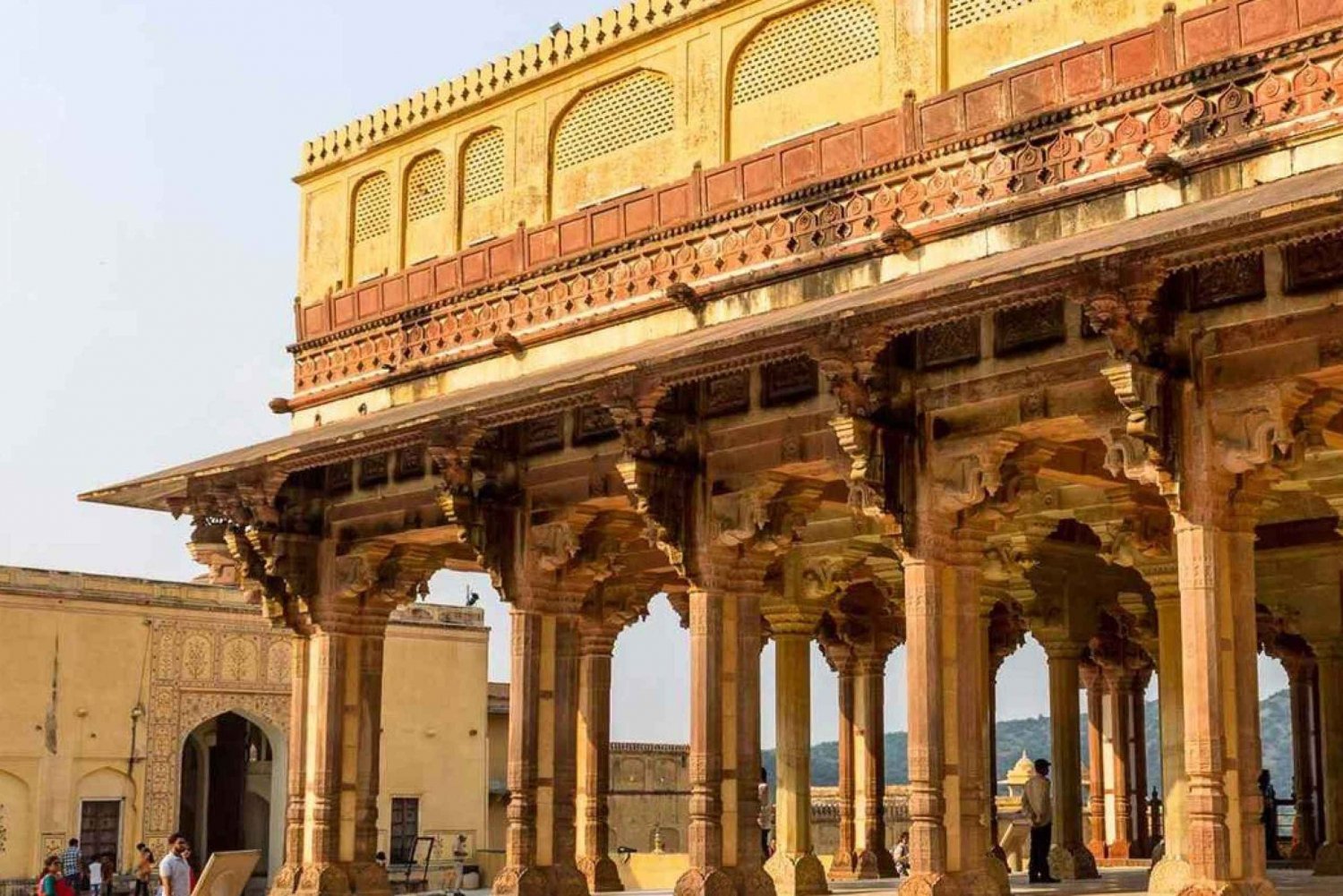 Amber Fort (1,5 Std.): Du triffst deinen Guide und erkundest das auf einem Hügel gelegene Fort, ein architektonisches Meisterwerk aus Hindu- und Rajputana-Stil.