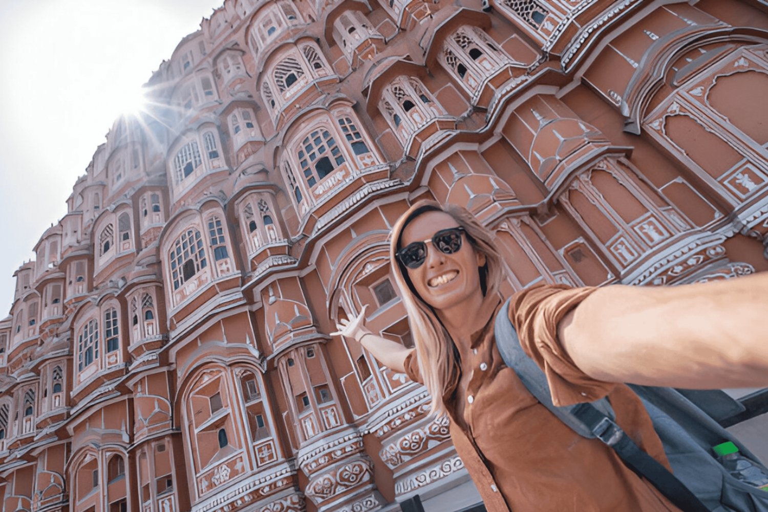 Beginne mit den berühmtesten Fotostopps von Jaipur Erlebe den Hawa Mahal – nicht nur von der Straße aus, sondern auch mit den Geschichten, die sich hinter seinen Fenstern verbergen.