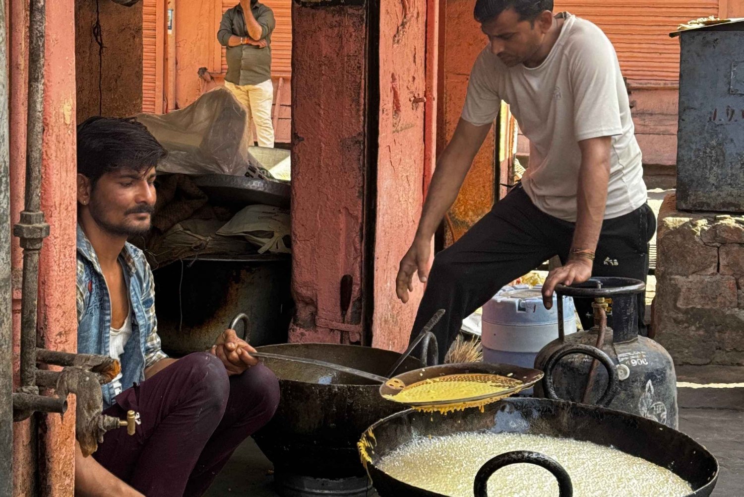 Experimenta la verdadera esencia de Jaipur mientras te llevamos más allá de la mera comida, proporcionándote una puerta para comprender el alma de la ciudad. Explora el corazón de la antigua e histórica Jaipur, lejos de las multitudes de turistas, y descubre la vida local, la cultura y la experiencia culinaria centenaria de hábiles vendedores callejeros y tiendas locales. Estos tesoros ocultos dejarán una impresión duradera en tu paladar mientras te sumerges en el arte, la cultura y las tradiciones de Jaipur. Maravíllate ante los bulliciosos mercados, admira las intrincadas casas pintadas al fresco y sé testigo del patrimonio artístico que hace que Jaipur sea verdaderamente especial. Por el camino, te encontrarás con artesanías únicas, tendrás la oportunidad de conocer a los artesanos locales y comprenderás mejor su artesanía y su pasión.