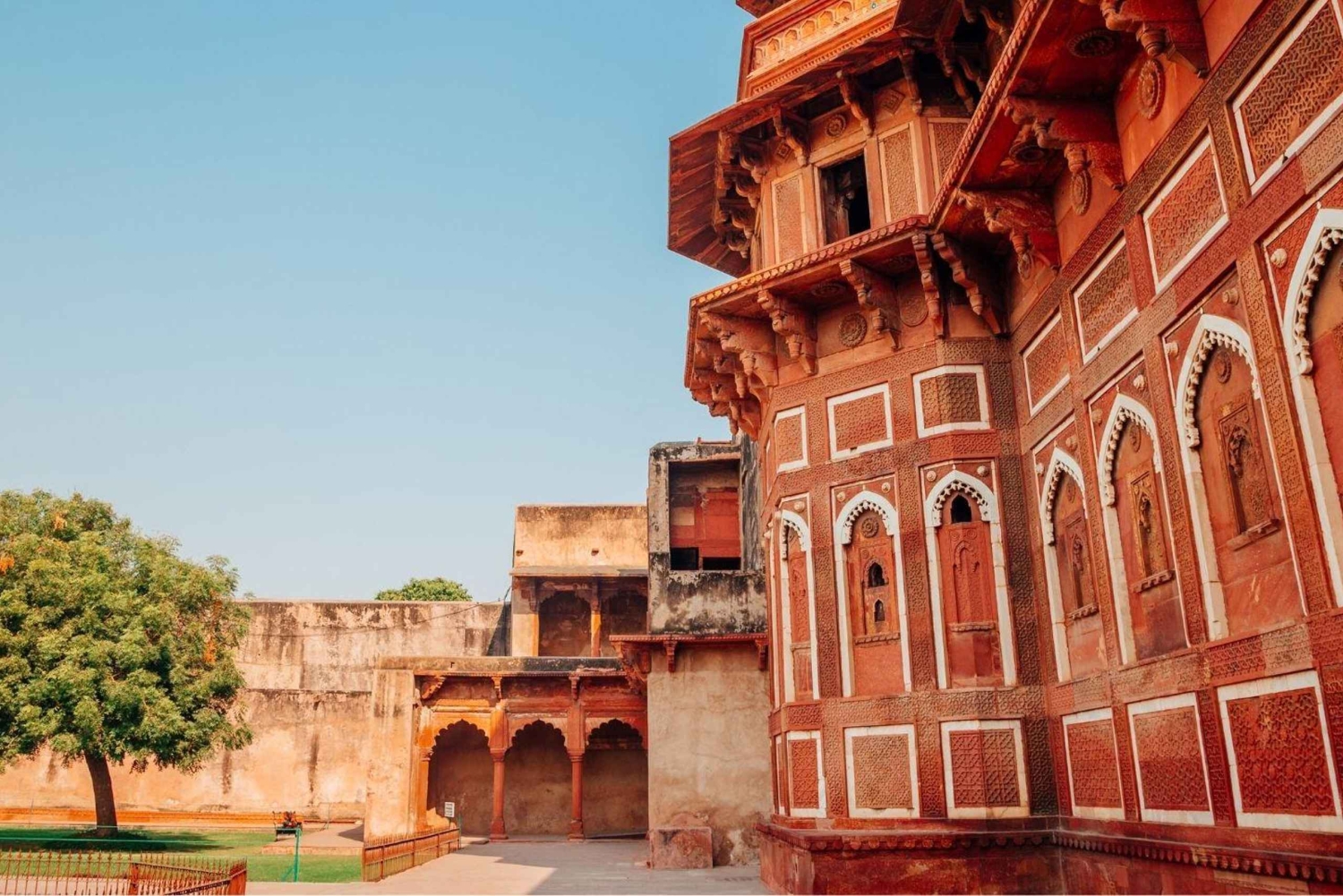 ムガル建築の驚異であり、新世界七不思議の 1 つでもある、世界的に有名なタージ マハルを探索しましょう。その後、いくつかの見晴らしの良い場所からタージ マハルの素晴らしい景色を楽しめる巨大なアグラ城を訪れましょう。
