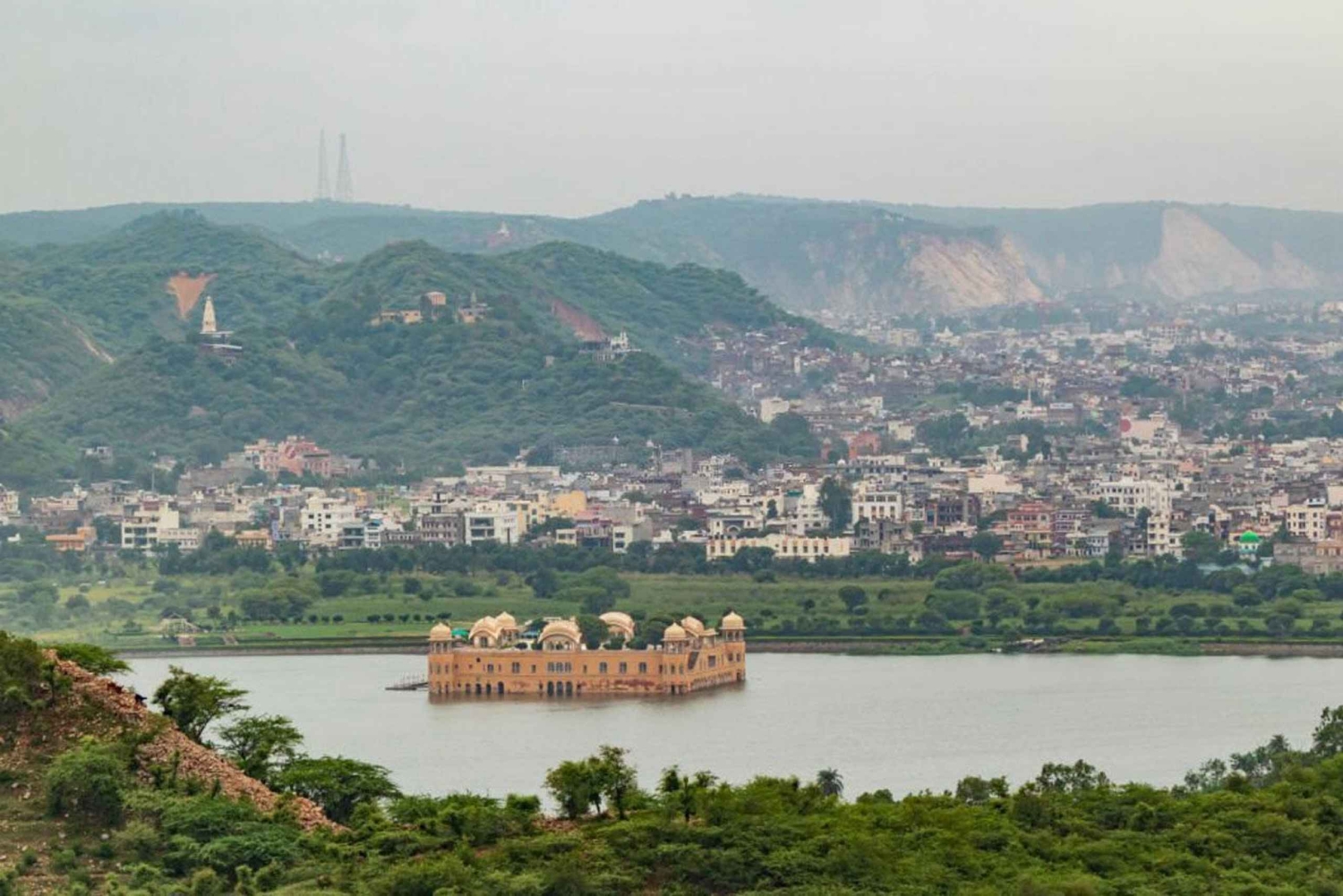 ユニークなファサードと複雑な格子細工で知られる「風の宮殿」を訪れます。次に、マンサガール湖の真ん中にある絵のように美しい宮殿、ジャル マハルを見学します。遠くから眺めるのが一番です。