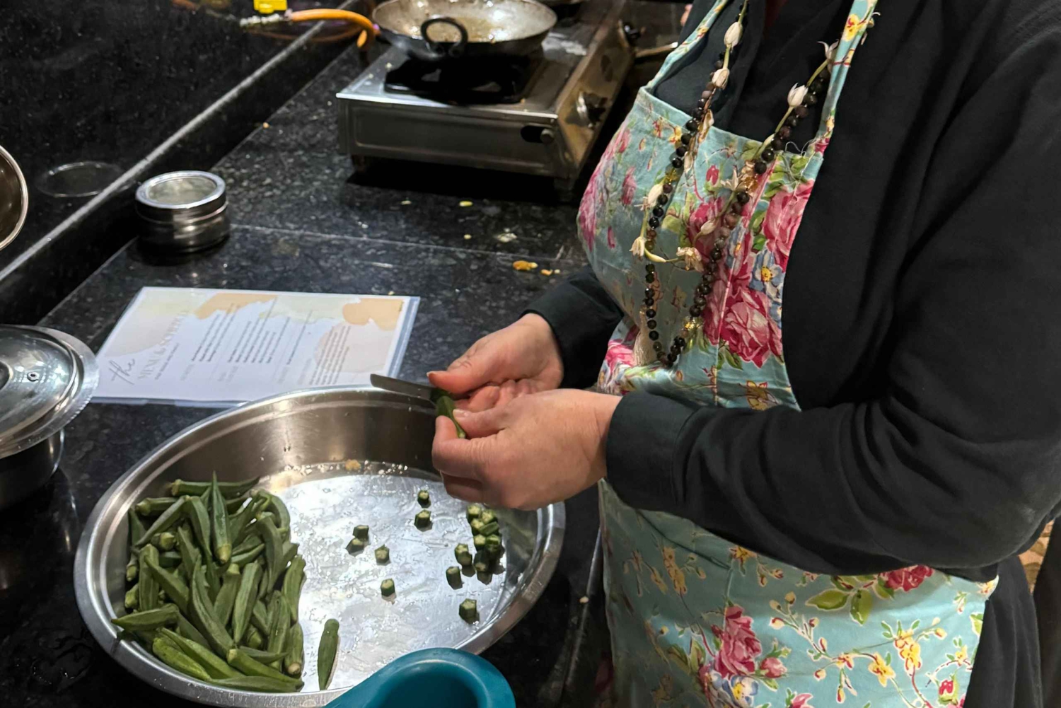 - Vi ber deg om å være nysgjerrig på å lære og stille spørsmål mens du tilbereder tradisjonell indisk mat under matlagingsturen. Vi ber deg også om å komme med lett mage, slik at det er lett å få i seg mer mat og drikke etter matlagingen. Til slutt vil det være mulig å stille spørsmål og komme med tolkninger etter at fortellingen er ferdig, slik at vertskapet ikke mister tråden.