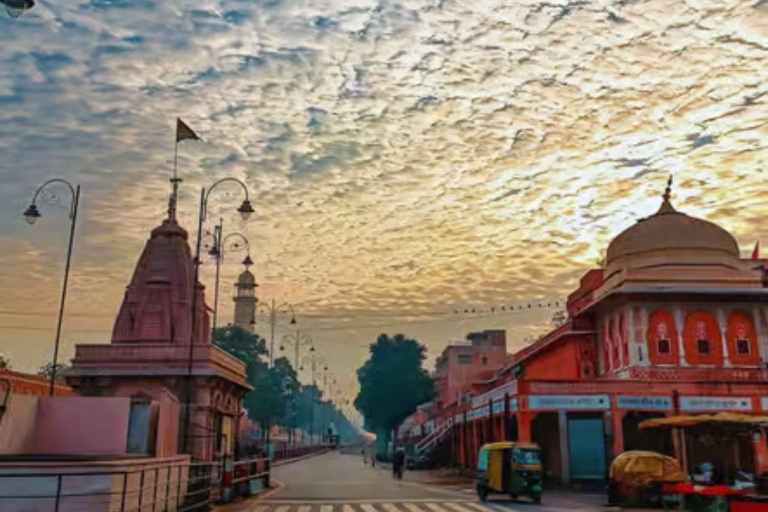 Poznaj spokojny poranek w Jaipurze podczas przejażdżki tuk-tukiem! Odkryj ciche uliczki, tętniące życiem lokalne targowiska i świątynię Govind Dev Ji. Ciesz się przekąskami z masala chai, obserwując, jak miasto budzi się do życia.