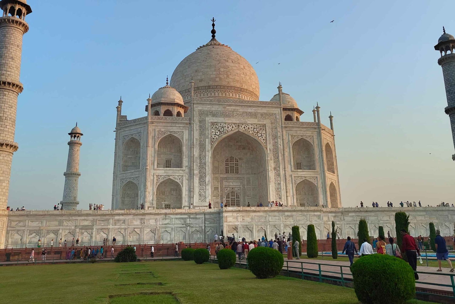 Besök Taj Mahal, ett storslaget tempel som byggdes till minne av hans fru av den femte mogulkejsaren Shah Jahan. Fortsätt till Agra Fort, ett medeltida fort som byggdes på 1500-talet på platsen för det förfallna Badalgarh Fort av den tredje mogulkejsaren Akbar.